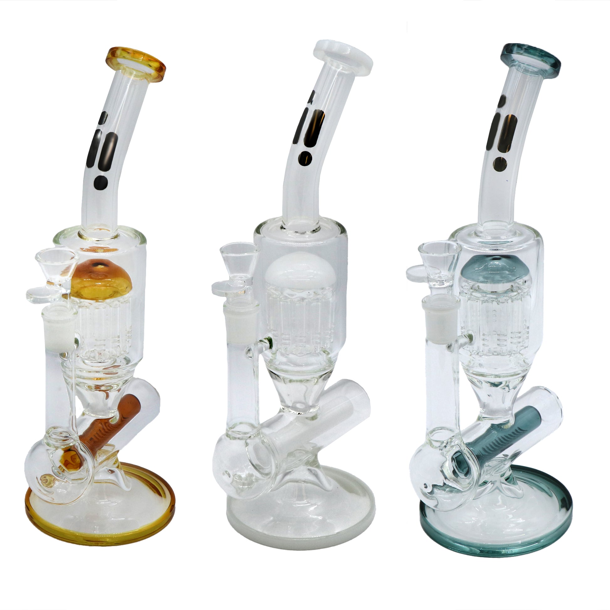 14" Water Pipe Inline, Tree Perk, Stemless, Bent Neck