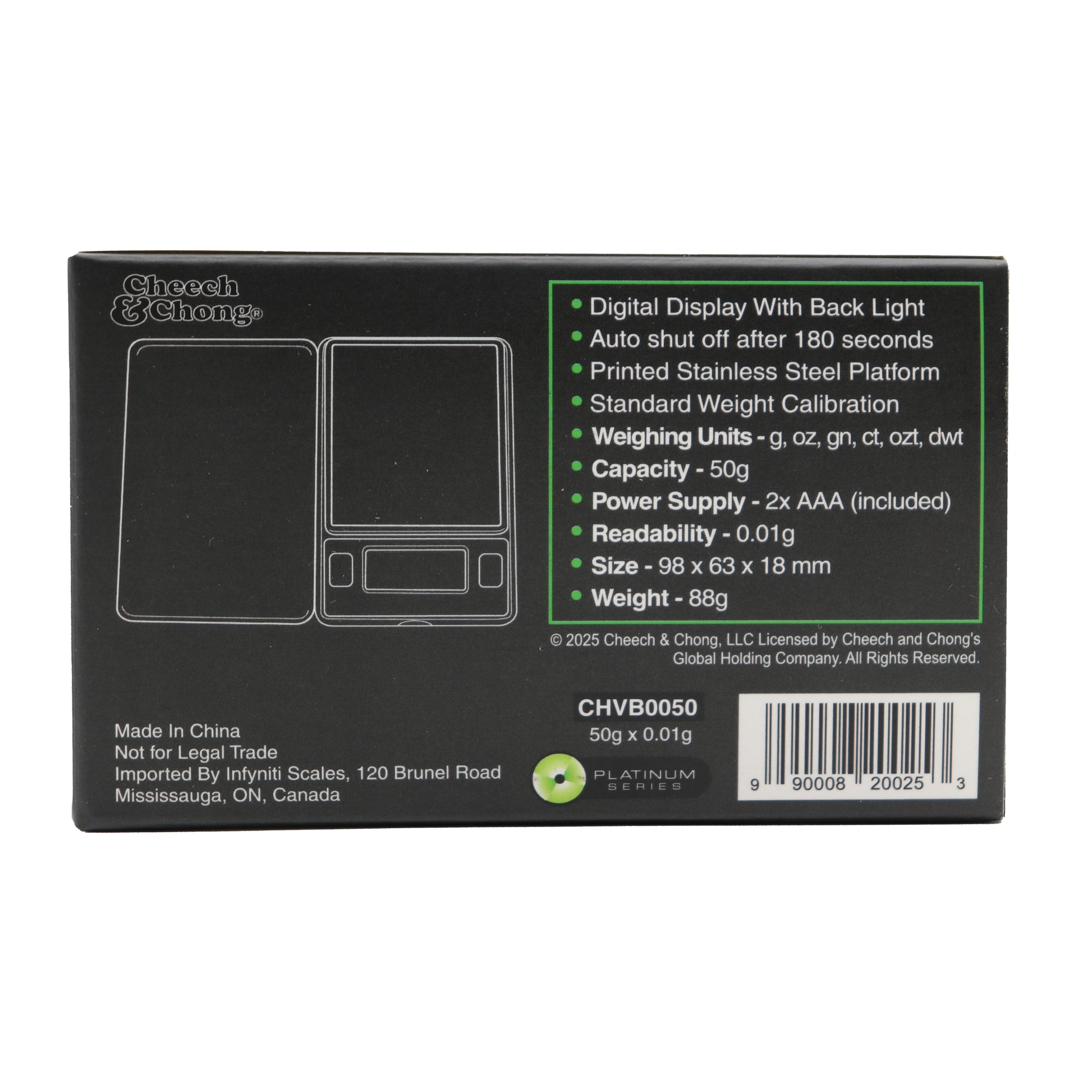 The Infyniti Cheech and Chong Virus maintains the high quality of the Infyniti brand with that extra bit of style. Feel like a G with these high quality digital pocket scales.